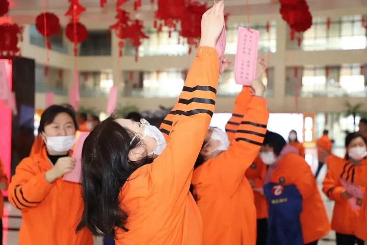一條條涵蓋歷史、自然、生活等趣味十足的燈謎,引起職工們的極大興趣,紛紛領謎面猜謎底,不時傳來陣陣歡笑聲。