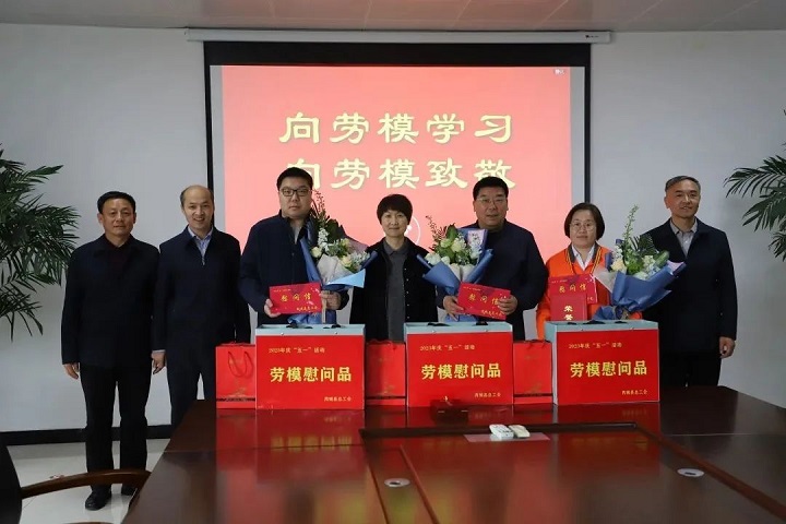 在五一國(guó)際勞動(dòng)節(jié)到來之際,芮城縣委副書記楊春霞、縣總工會(huì)黨組書記、常務(wù)副主席張亞波到大禹生物,慰問山西省五一勞動(dòng)獎(jiǎng)?wù)芦@得者、運(yùn)城市勞動(dòng)模范、大禹生物黨支部書記、董事長(zhǎng)閆和平;全國(guó)五一勞動(dòng)獎(jiǎng)?wù)芦@得者、山西省勞動(dòng)模范、大禹生物總經(jīng)理閆凌鵬;并為今年剛剛榮獲“運(yùn)城市勞動(dòng)模范”榮譽(yù)稱號(hào)的大禹生物質(zhì)保部經(jīng)理黨亞朋授獎(jiǎng)。