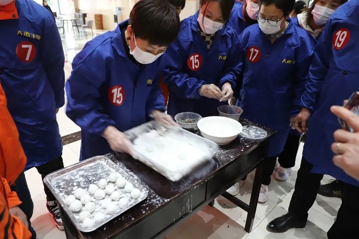 猜完燈謎后,公司為給職工們準備了寓意“團團圓圓”的湯圓,大家圍坐在一起,敞開心扉暢聊。