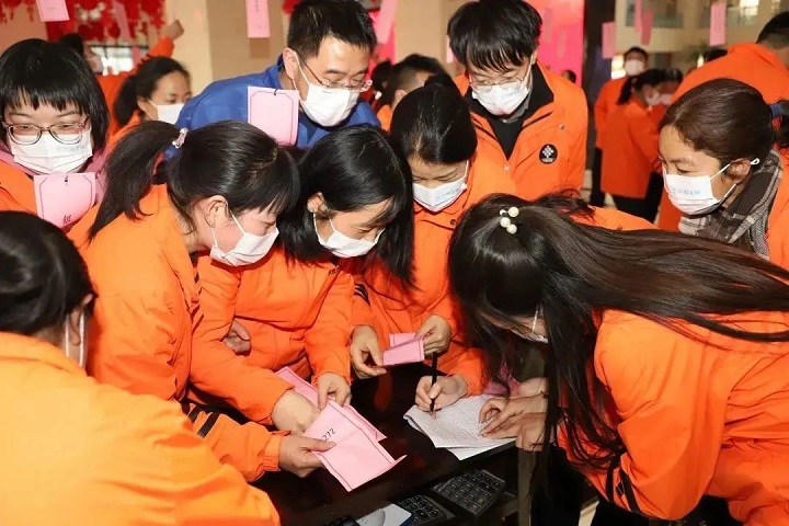 一條條涵蓋歷史、自然、生活等趣味十足的燈謎,引起職工們的極大興趣,紛紛領謎面猜謎底,不時傳來陣陣歡笑聲。