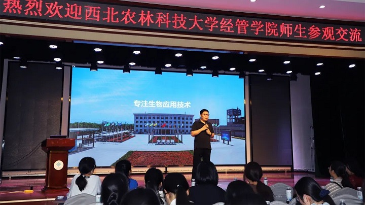 6月26日,由西北農(nóng)林科技大學(xué)經(jīng)濟(jì)管理學(xué)院副院長(zhǎng)汪紅梅教授帶隊(duì),近60名經(jīng)濟(jì)學(xué)專業(yè)師生到我公司參觀交流。公司總經(jīng)理閆凌鵬、副總經(jīng)理麻嘯濤、羅鵬等領(lǐng)導(dǎo)進(jìn)行了熱情接待。