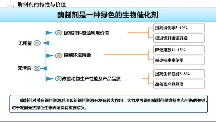 好的酶制劑對動物健康、營養(yǎng)和效益都有效,可以改善動物對疾病和不良環(huán)境的抵抗力,進而提高生產(chǎn)性能;